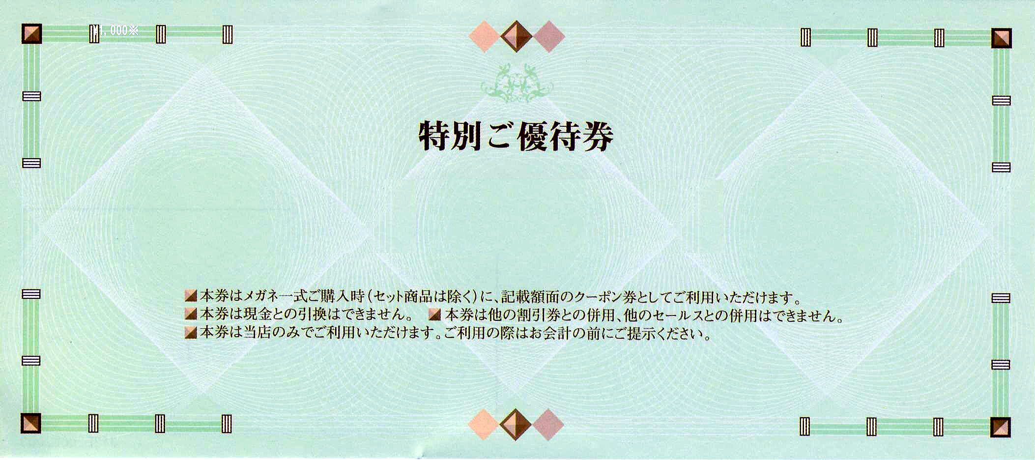 対象商品はメガネ一式購入時及び、レンズ一組にクーポン券としてご利用できます。